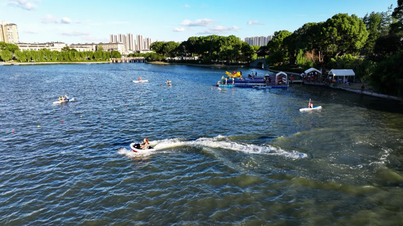 唐平湖的变化并非偶然。作为玉祁街道文商旅融合发展的亮眼名片,这里不仅有大片的草坪、令人心旷神怡的湖景,今年以来湖岸周边还新添了露营基地、休闲咖啡、露天电影等休闲体验。“无论是悠闲泛舟,还是激情冲浪,这里都会成为游客的好选择。”杨俊熠表示,这里是锡西片区唯一的水上运动中心,明年还计划扩建码头,增加竞技性和趣味性项目,满足游客多元消费需求。