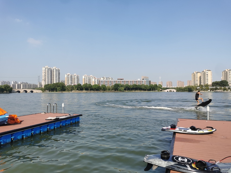 “刚刚过去的长假里有不少游客来此体验‘唐平趣浪’。周末也有游客通过网络购票来此体验。”10月11日,“唐平趣浪”水上运动项目运营相关负责人杨俊熠介绍。今年7月初,无锡十大湿地资源之一——唐平湖水上运动中心正式亮相,短短三个月,已吸引无锡市区及周边苏州、常州等地游客1万余人前来打卡体验。22亩的水面上,桨板、皮划艇、卡丁船、摩托艇拖拽皮卡丘等项目,让游客在专业教练陪同下,感受破浪飞跃、急停漂移的刺激,或以水面独特视角欣赏沿岸优美风光。