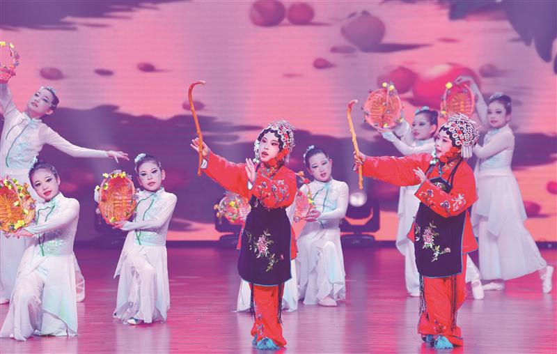 10月31日,宜兴市桃溪小学的学生在表演锡剧《摘石榴》。