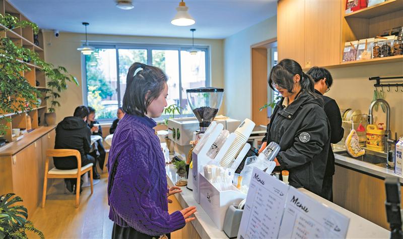 昨天(11月25日),水仙里社区居民在社区咖啡馆消费。该咖啡馆不仅设有阅读空间,还会定期开展商品义卖,为附近居民提供更多的便民服务。